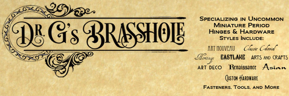 Dr. G’s Brasshole specializes in hard-to-find and uncommon miniature period hinges and hardware.